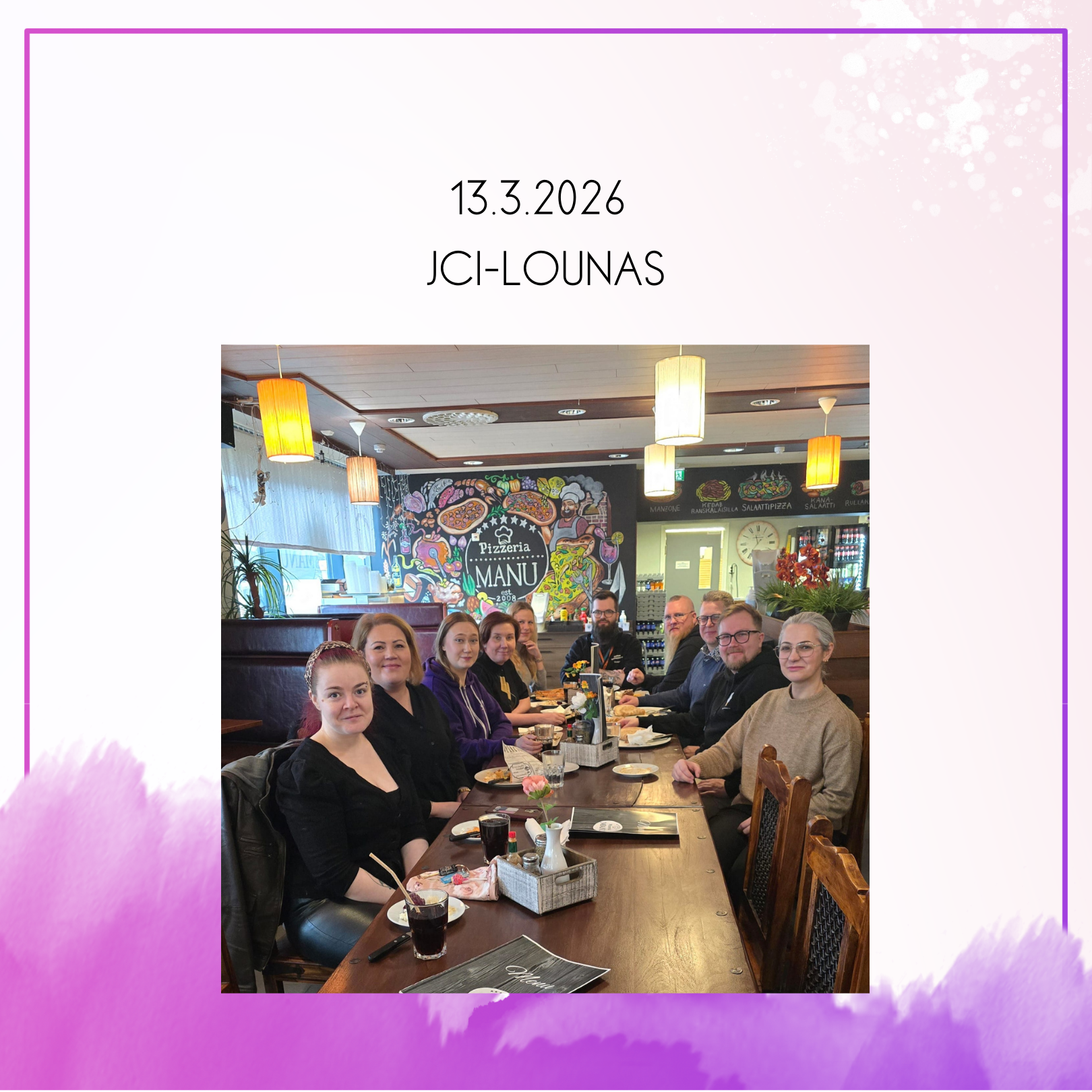 Vuoden ensimmäinen kvartaali on pian takana ja ensi viikon perjantaina kokoonnumme Raahen nuorkauppakamarin vuosikokoukseen Pub Uunilintuun. Olemme todenneet kokoustamisen pizzan äärellä hyväksi konseptiksi, joten tulevana perjantaina on tarjolla painavan asialistan lisäksi herkullista pizzaa (ananas kuuluu ehdottomasti pizzaan!). Vuosikokouksessa käydään läpi mennyttä vuotta ja silmäillään tulevaa: asialistalla on esimerkiksi toimintakertomuksen, tilinpäätöksen, toimintasuunnitelman ja talousarvion käsittely. Lisäksi vuosikokouksessa on mahdollista nostaa koejäseniä jäseniksi. Perinteisesti ilta ei pääty sen jälkeen, kun hallitukselle on myönnetty vastuuvapaus, vaan ilta jatkuu yhteisellä illanvietolla, kenties karaoken merkeissä.